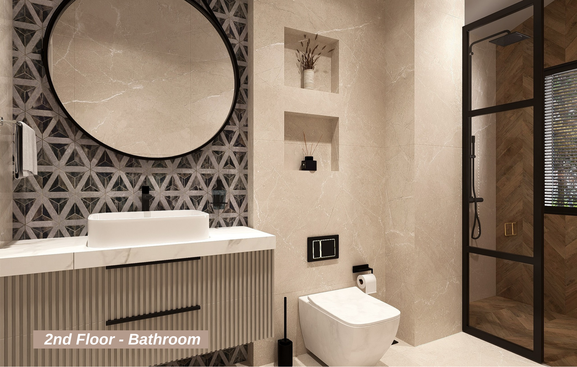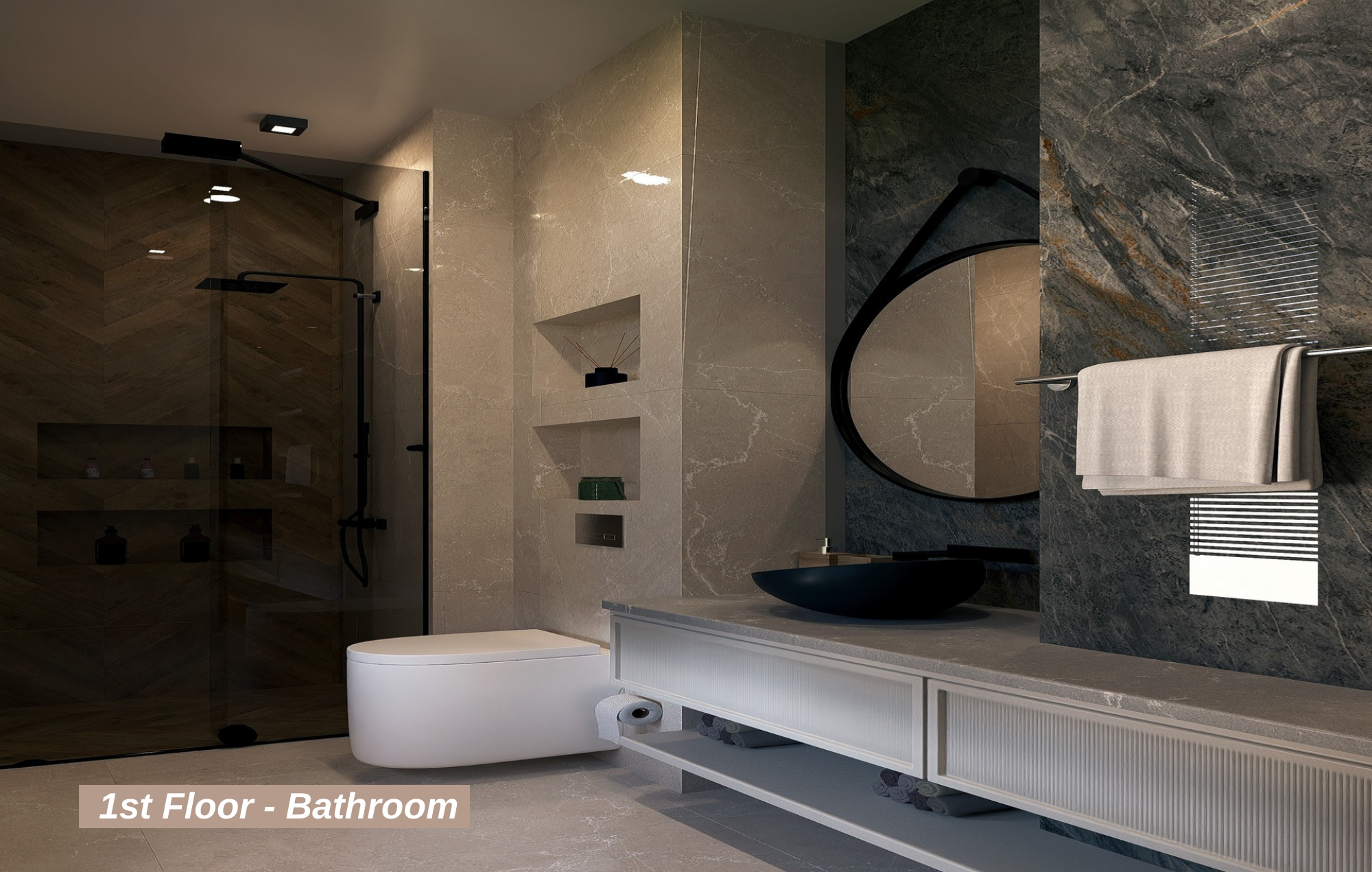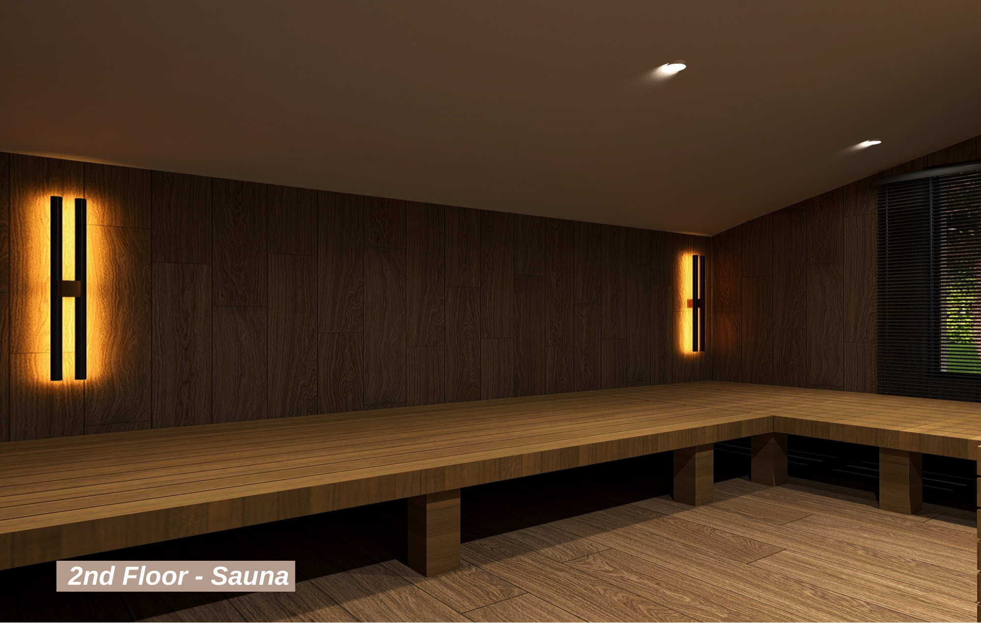 The private sauna and steam room, designed to help you unwind from the day's stress, elevate your quality of life by offering a unique wellness experience exclusive to the villa.