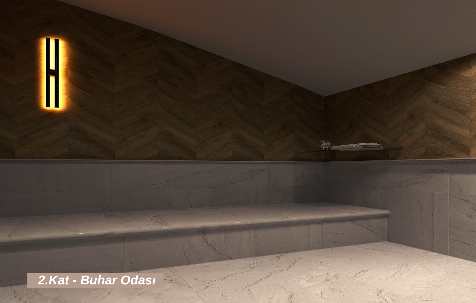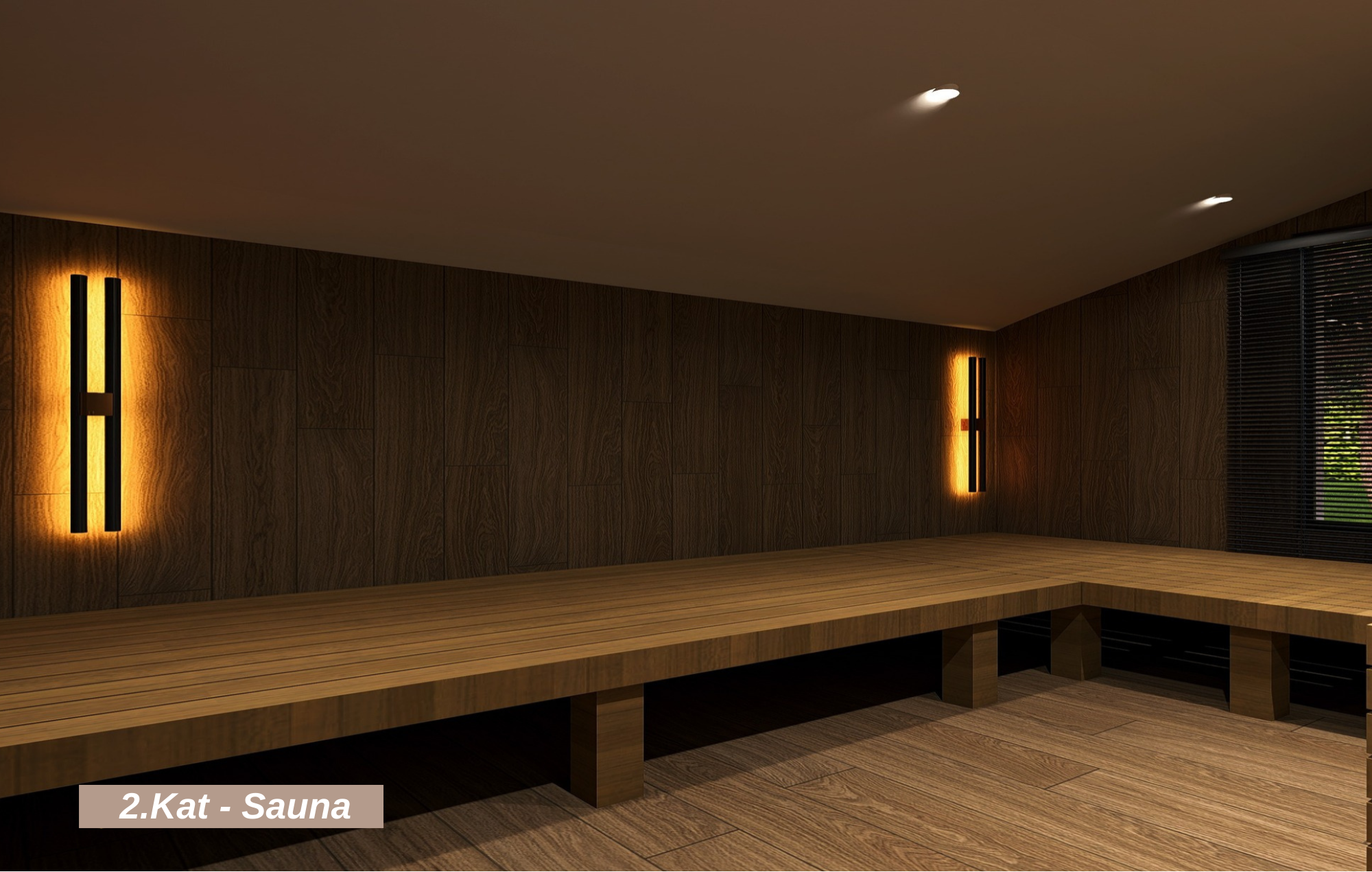 Günün stresini atmanızı sağlayan özel sauna ve buhar odası, villaya özel wellness deneyimi sunarak yaşam kalitenizi bir üst seviyeye taşır.
