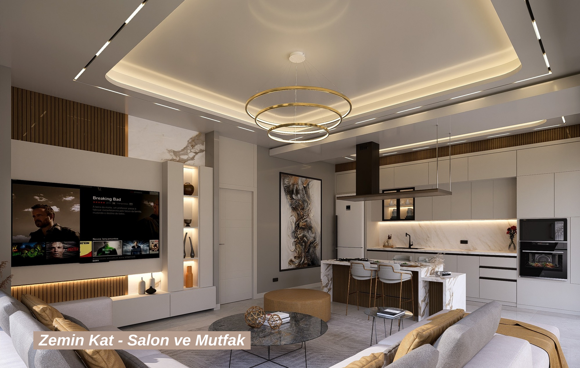 Modern yaşamı kolaylaştıran tam entegre akıllı ev altyapısıyla ışık, iklimlendirme ve güvenlik gibi birçok kontrolü tek dokunuşla yönetme imkânı sunar.