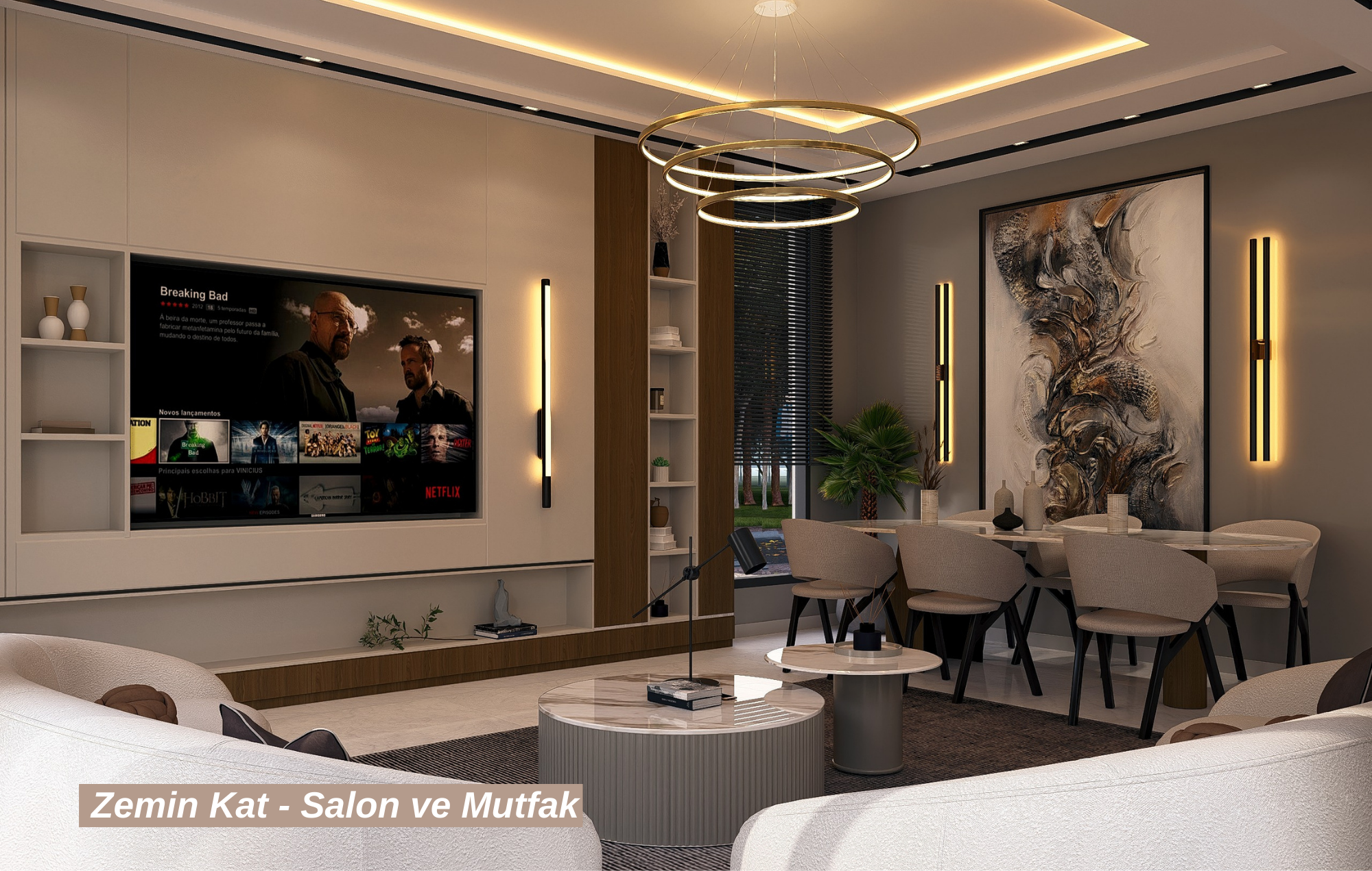 Modern yaşamı kolaylaştıran tam entegre akıllı ev altyapısıyla ışık, iklimlendirme ve güvenlik gibi birçok kontrolü tek dokunuşla yönetme imkânı sunar.